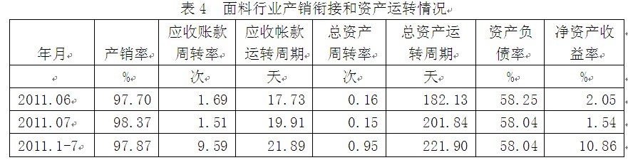 4面料行業(yè)產(chǎn)銷(xiāo)銜接和資產(chǎn)運(yùn)轉(zhuǎn)情況