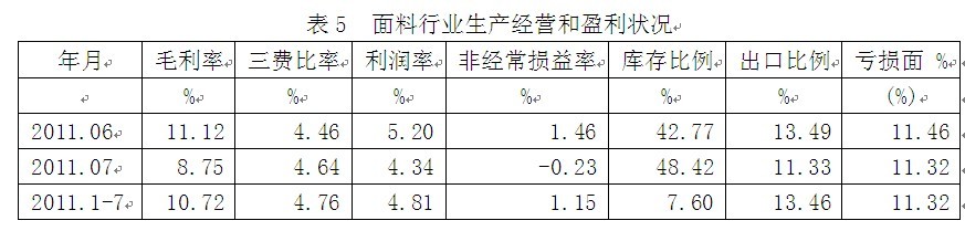 5面料行業(yè)生產(chǎn)經(jīng)營(yíng)和盈利狀況