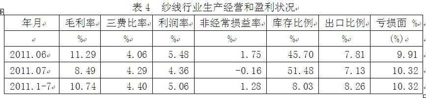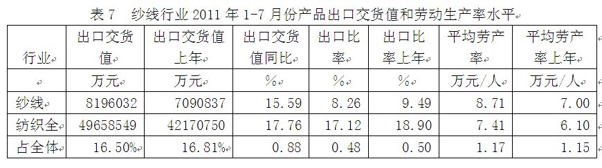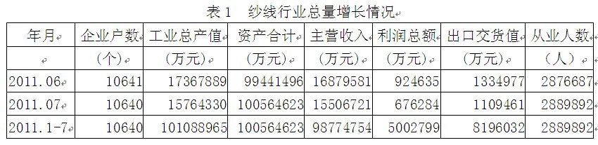 2011年1-7月紗線行業(yè)經(jīng)濟運行分析