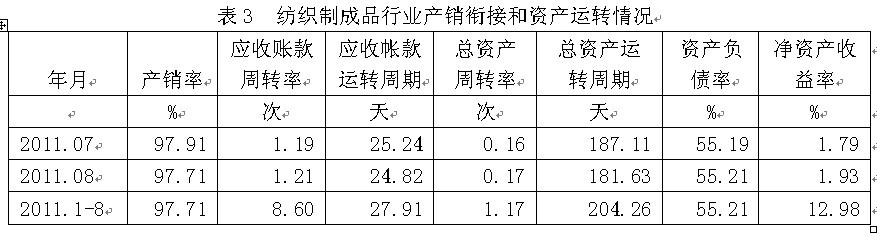 3紡織制成品行業(yè)產(chǎn)銷銜接和資產(chǎn)運轉(zhuǎn)情況