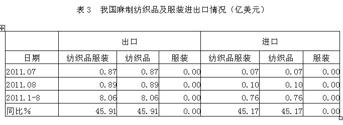 3麻制紡織品服裝進出口情況