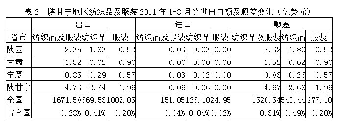 2陜甘寧紡織品服裝進(jìn)出口變化