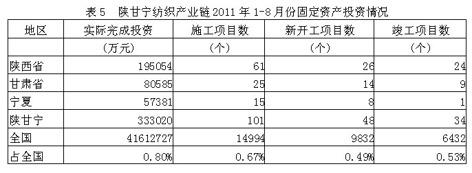 5陜甘寧紡織產(chǎn)業(yè)鏈固定資產(chǎn)投資情況