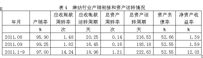 4麻紡行業(yè)產(chǎn)銷銜接和資產(chǎn)運(yùn)轉(zhuǎn)情況