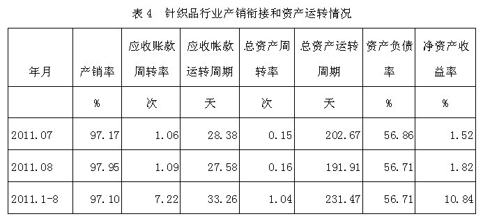 4針織品行業(yè)產(chǎn)銷銜接和資產(chǎn)運(yùn)轉(zhuǎn)情況