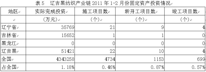 5遼吉黑紡織產(chǎn)業(yè)鏈固定資產(chǎn)投資情況