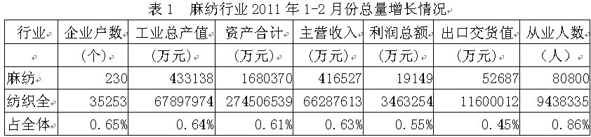 1麻紡行業(yè)總量增長情況