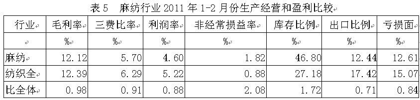5麻紡行業(yè)生產(chǎn)經(jīng)營和盈利狀況