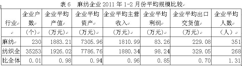 6麻紡企業(yè)平均規(guī)模比較