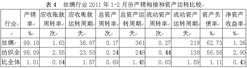 4絲綢行業(yè)產(chǎn)銷銜接和資產(chǎn)運轉(zhuǎn)情況