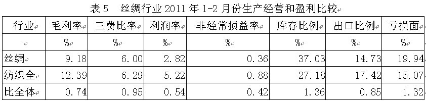 5絲綢行業(yè)生產(chǎn)經(jīng)營和盈利狀況