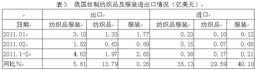 3絲制紡織品服裝進出口情況