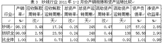 3紗線行業(yè)產(chǎn)銷(xiāo)銜接和資產(chǎn)運(yùn)轉(zhuǎn)情況