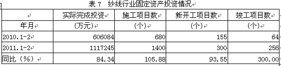 7紗線行業(yè)固定資產(chǎn)投資情況