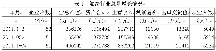 2011年1-3月氨綸行業(yè)經(jīng)濟(jì)減增概述