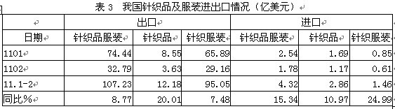 3針織品及服裝進(jìn)出口情況