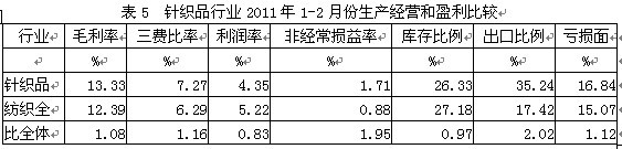 5針織品行業(yè)生產(chǎn)經(jīng)營和盈利狀況