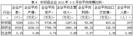 6針織品企業(yè)平均規(guī)模比較