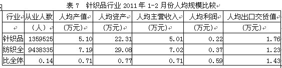 7針織品行業(yè)人均規(guī)模比較