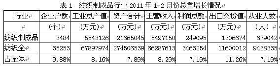 1紡織制成品行業(yè)總量增長(zhǎng)情況