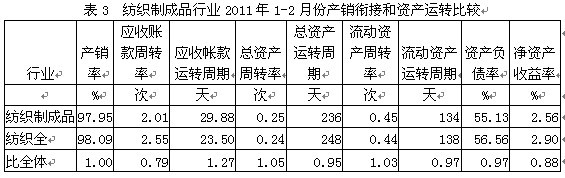 3紡織制成品行業(yè)產(chǎn)銷銜接和資產(chǎn)運(yùn)轉(zhuǎn)情況