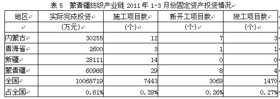 5蒙青疆紡織產(chǎn)業(yè)鏈固定資產(chǎn)投資情況