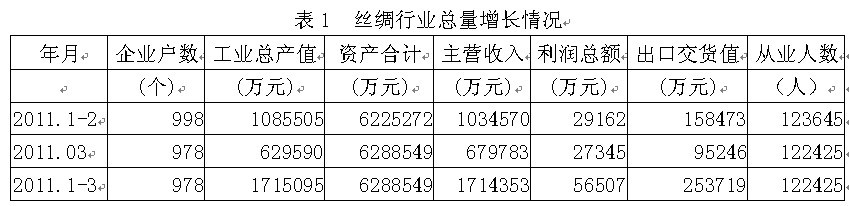 1絲綢行業(yè)總量增長(zhǎng)情況