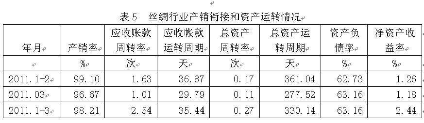5絲綢行業(yè)產(chǎn)銷銜接和資產(chǎn)運(yùn)轉(zhuǎn)情況