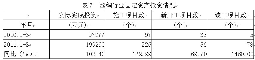 7絲綢行業(yè)固定資產(chǎn)投資情況