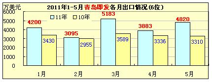 據(jù)海關(guān)統(tǒng)計(jì),5月份山東省紡織服裝出口16.14億美元,同比增長(zhǎng)13.7%,環(huán)比下降7.2%。1-5月累計(jì)出口79.04億美元,同比增長(zhǎng)28.8%,增速較1-4月回落4.5個(gè)百分點(diǎn),高于全國平均回落速度。1-5月,山東省進(jìn)入全國前百位的的出口企業(yè)共12家,其中: 1、山東魏橋出口銳減。5月份,山東魏橋紡織出口4260萬美元,同比環(huán)比分別下降54.1%和55.7%。1-5月出口39289萬美元,同比增長(zhǎng)29.7%,仍排序全國紡織百家企業(yè)第一位。 2、青島即發(fā):1-5月出口21181萬美元,同比增長(zhǎng)27.4%。排序全國百家企業(yè)出口第6位。5月份出口4820萬美元,同比環(huán)比分別增長(zhǎng)45.6%和24.1%。 3、孚日集團(tuán):1-5月出口19862萬美元,同比增長(zhǎng)28.2%,排序和9位。五月份出口4064萬美元,同比增長(zhǎng)21.2%,環(huán)比微降0.7%。