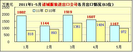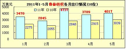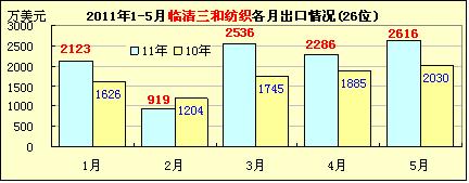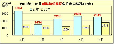 1-5月魏橋等11家山東紡企出口情況