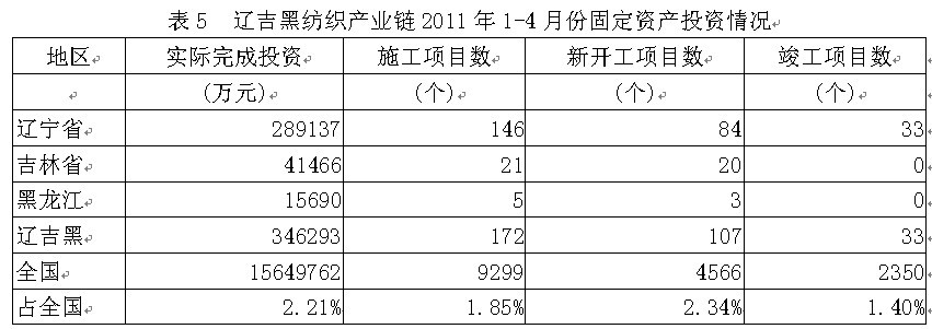 5遼吉黑紡織產(chǎn)業(yè)鏈固定資產(chǎn)投資情況