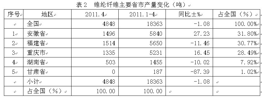 從2011年4月份的情況看,全國維綸纖維當(dāng)月總產(chǎn)量為0.48萬噸,上述5大省市的當(dāng)月產(chǎn)量合計(jì)為0.48萬噸,占全國當(dāng)月總產(chǎn)量的100.00%;由此可見,我國前5大省市的維綸纖維產(chǎn)量約占全國總產(chǎn)量的全部。