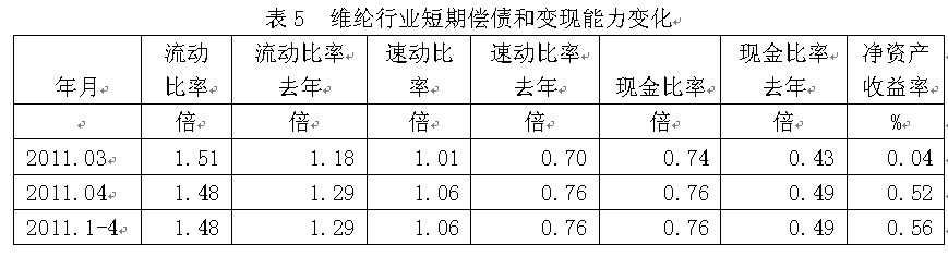 5維綸行業(yè)短期償債和變現(xiàn)能力變化