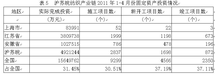 5滬蘇皖紡織產(chǎn)業(yè)鏈固定資產(chǎn)投資情況