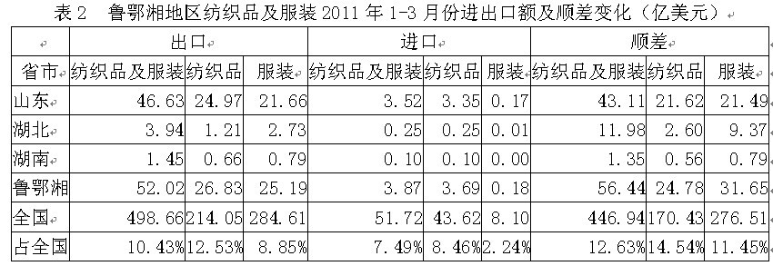 2魯鄂湘紡織品服裝進(jìn)出口變化