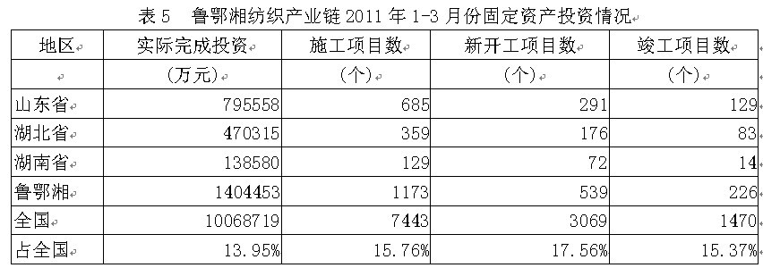 5魯鄂湘紡織產(chǎn)業(yè)鏈固定資產(chǎn)投資情況