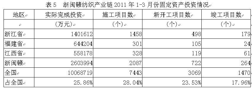 5浙閩贛紡織產(chǎn)業(yè)鏈固定資產(chǎn)投資情況