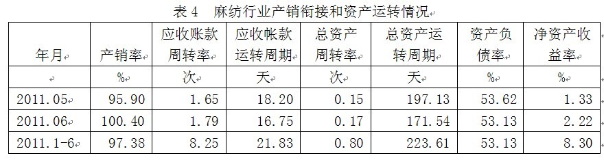 4麻紡行業(yè)產(chǎn)銷銜接和資產(chǎn)運(yùn)轉(zhuǎn)情況