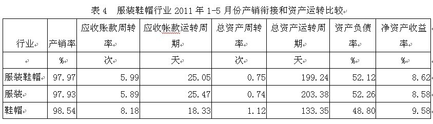 4服裝鞋帽行業(yè)產(chǎn)銷銜接和資產(chǎn)運轉(zhuǎn)情況