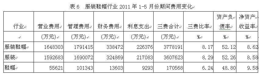 6服裝鞋帽行業(yè)期間費用變化