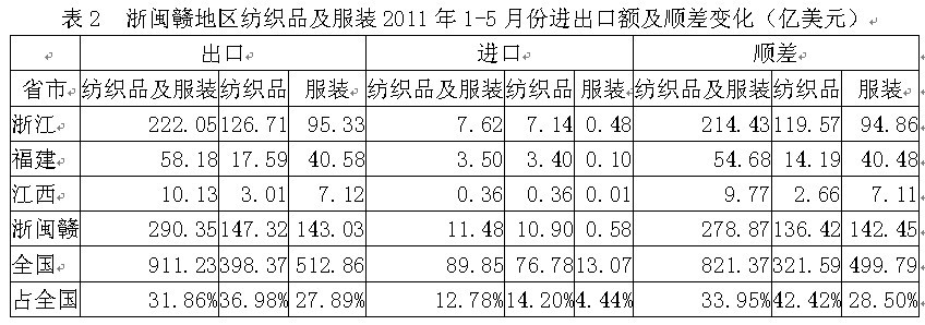2浙閩贛紡織品服裝進(jìn)出口變化