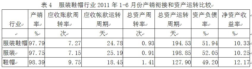 4服裝鞋帽行業(yè)產(chǎn)銷銜接和資產(chǎn)運(yùn)轉(zhuǎn)情況