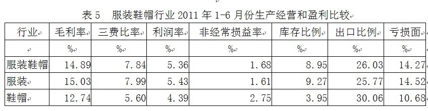 5服裝鞋帽行業(yè)生產(chǎn)經(jīng)營和盈利狀況