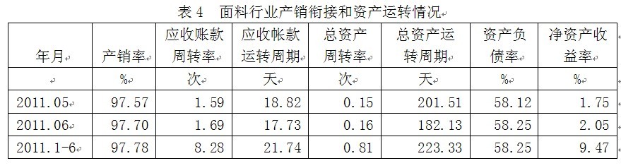 4面料行業(yè)產(chǎn)銷銜接和資產(chǎn)運轉(zhuǎn)情況