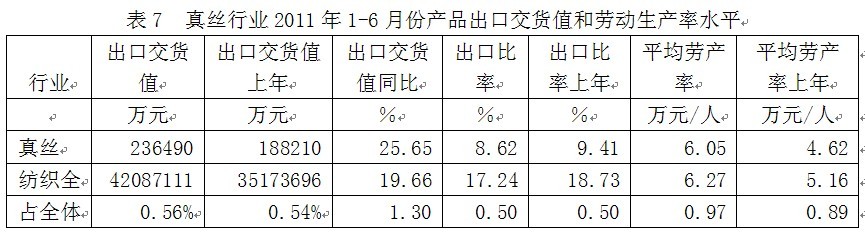 7真絲行業(yè)產(chǎn)品出口交貨值和勞動(dòng)生產(chǎn)率水平