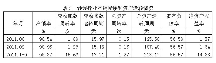 3紗線行業(yè)產(chǎn)銷銜接和資產(chǎn)運(yùn)轉(zhuǎn)情況