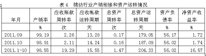 4棉紡行業(yè)產(chǎn)銷銜接和資產(chǎn)運(yùn)轉(zhuǎn)情況