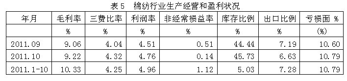 5棉紡行業(yè)生產(chǎn)經(jīng)營(yíng)和盈利狀況