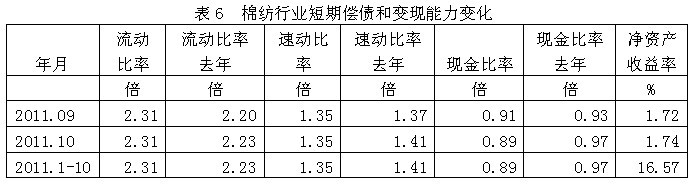 6棉紡行業(yè)短期償債和變現(xiàn)能力變化
